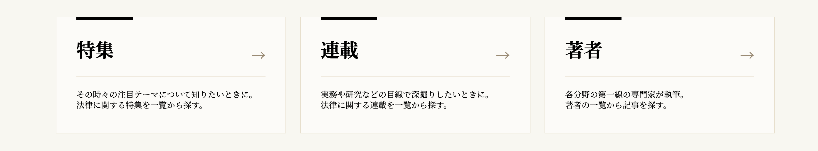 有斐閣Onlineロージャーナルの記事は、7つの記事カテゴリーに分かれています。ここから、それぞれの記事カテゴリーの一覧にジャンプできます。(→記事カテゴリーから探す)¶009