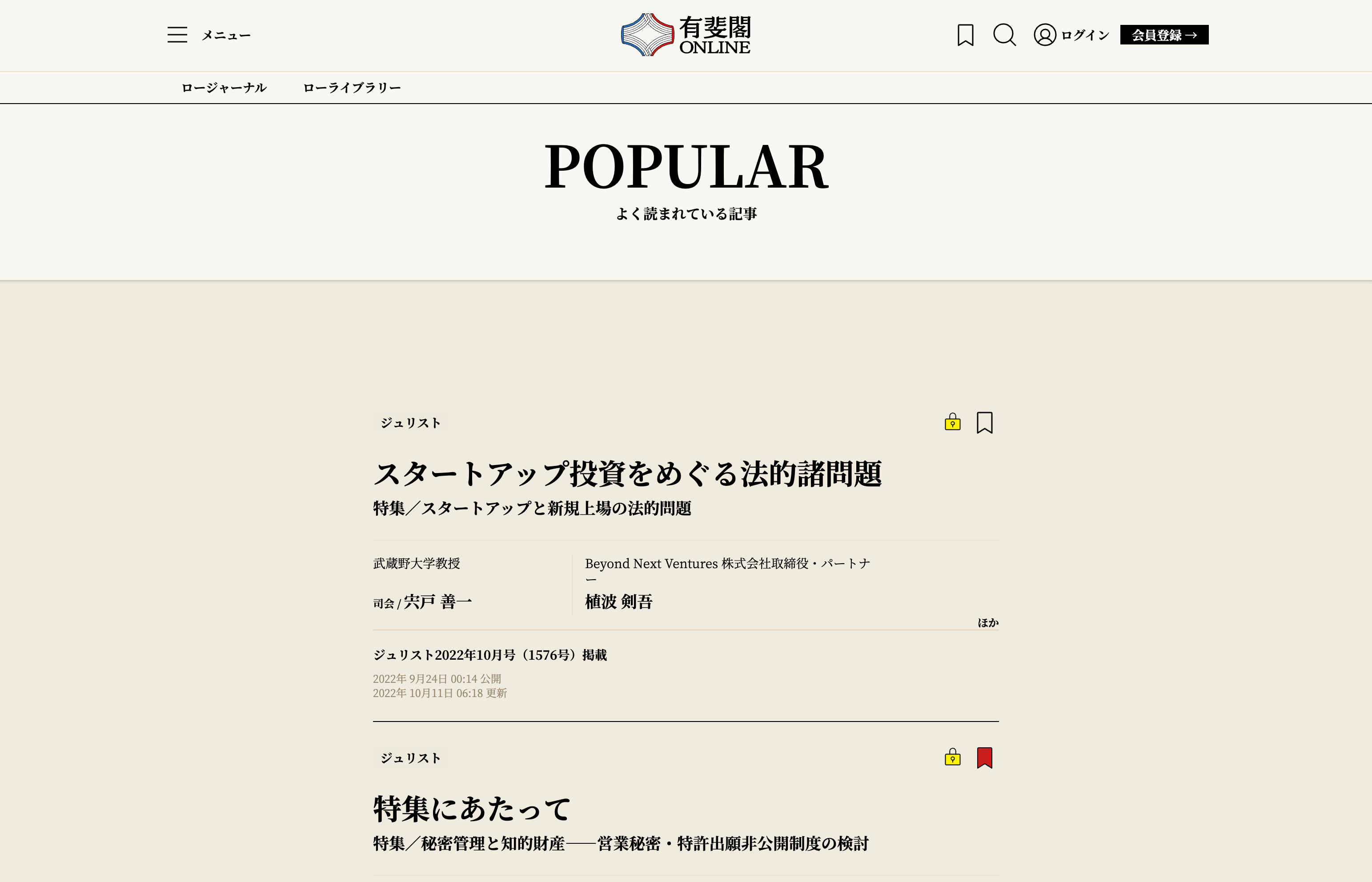 その下には、有斐閣Onlineのユーザーによく読まれている記事が表示されます。¶016