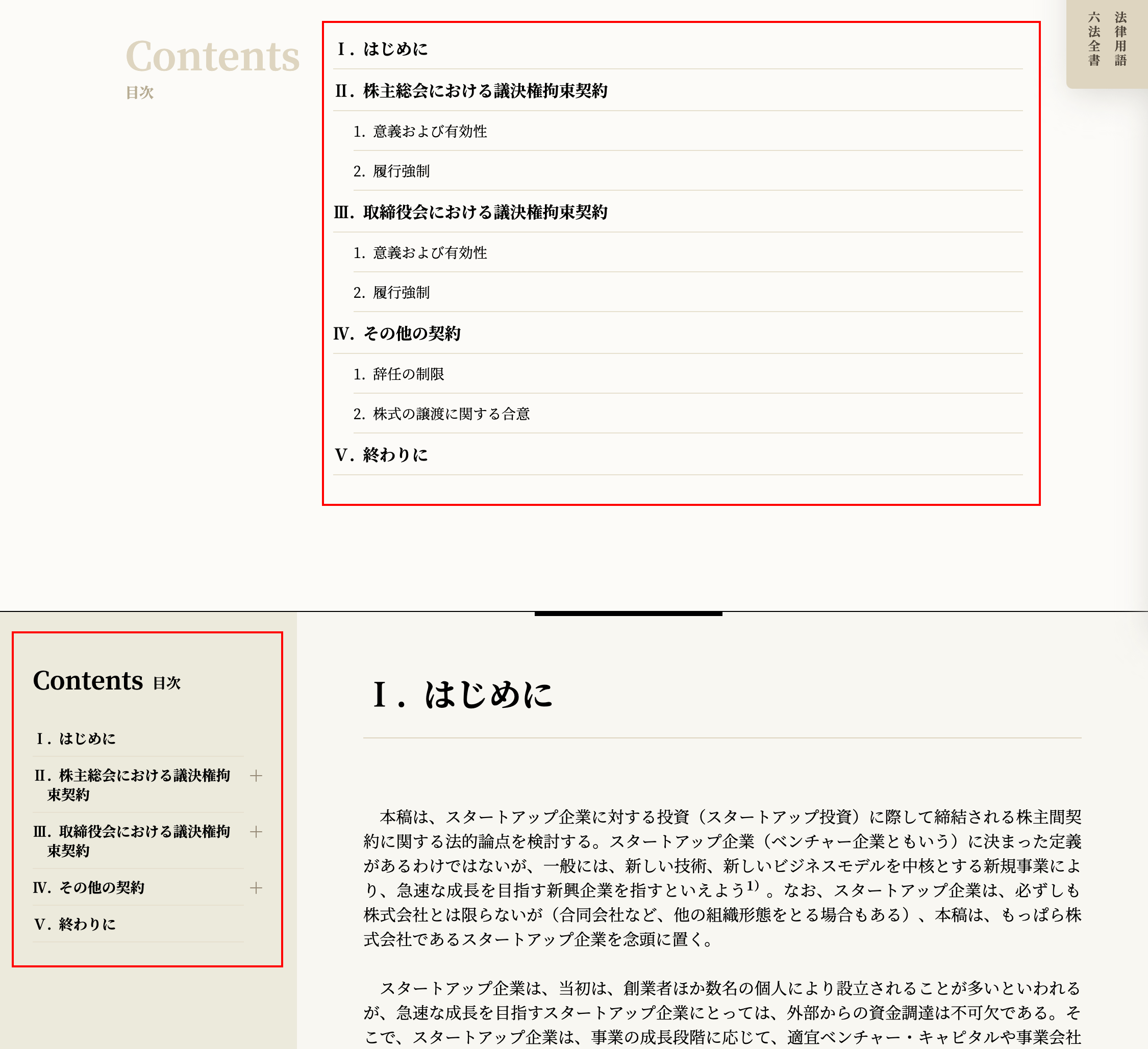 タイトルの下と記事本文の左側には目次エリアがあります。それぞれ、各見出しへのリンクが張ってあり、クリックすると、当該見出しの箇所にジャンプすることができます。¶011