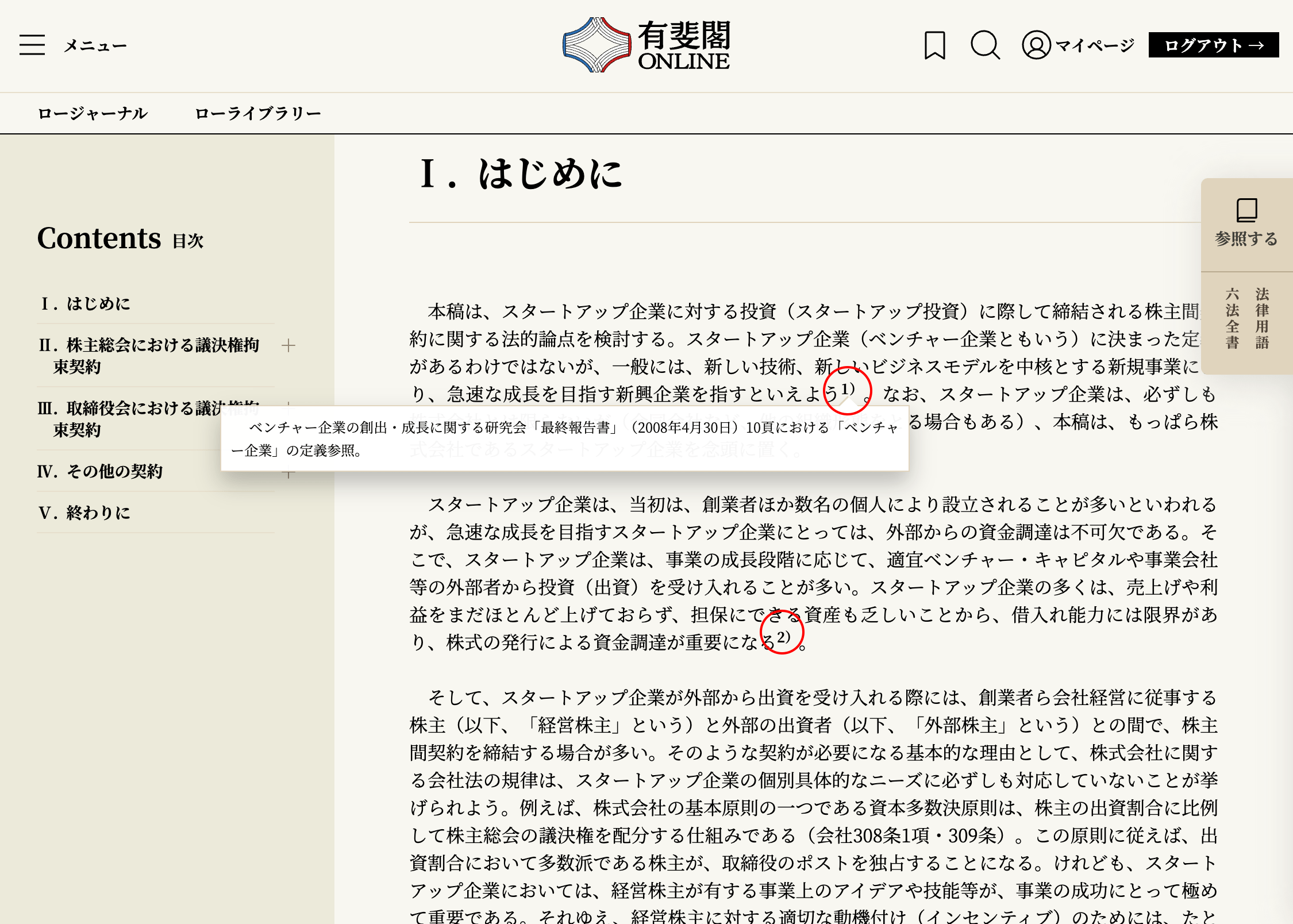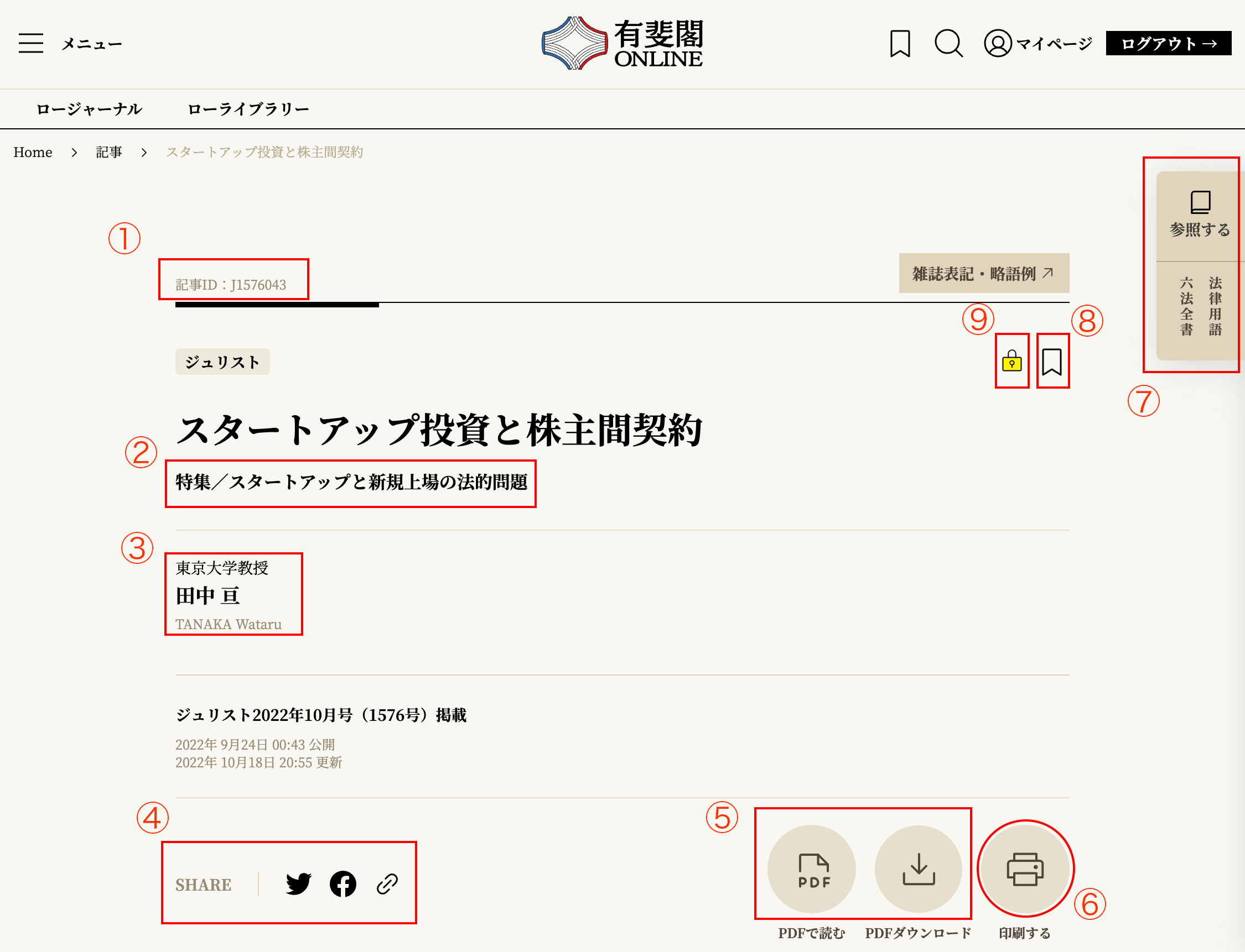 各記事についているIDです。このIDは、記事が更新されたり、他の記事が追加されたりしても変わらない、記事ごとに固有のものです。有斐閣Online内で記事を探すときや、他の論文等で引用する場合などにお使いください(→特定の情報をもとに記事を探す →オリジナルコンテンツの引用)。¶002
