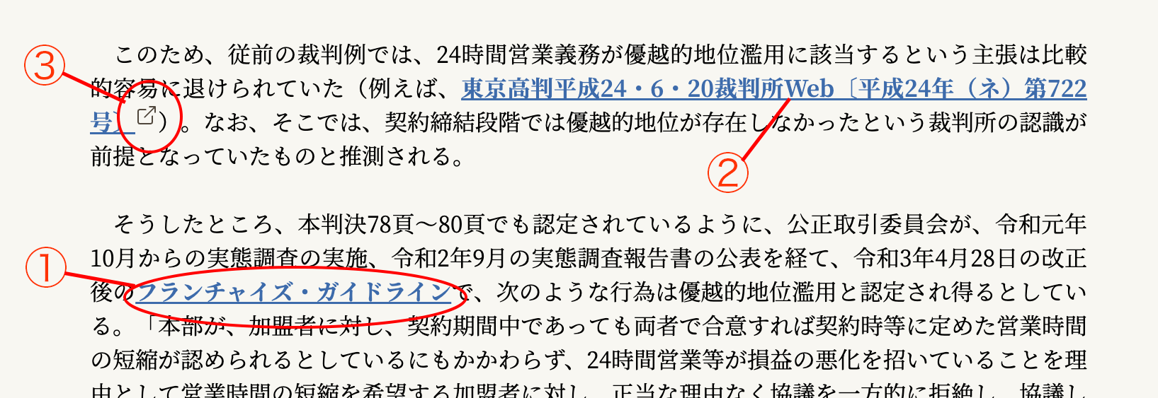 青い文字で下線が入っている部分は、クリックすると、外部のサイトにジャンプします。ただし、下記②と④については、有斐閣Online内部へのリンクになります。¶015