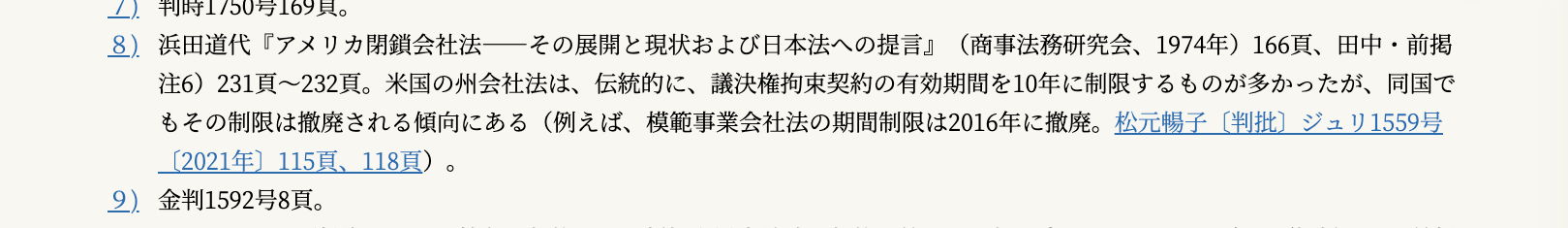 裁判例等にもリンクがついていますが、このリンクは、当該裁判例等に関する有斐閣Online内の別の記事の一覧ページにジャンプします(→裁判例のリンク)。¶016
