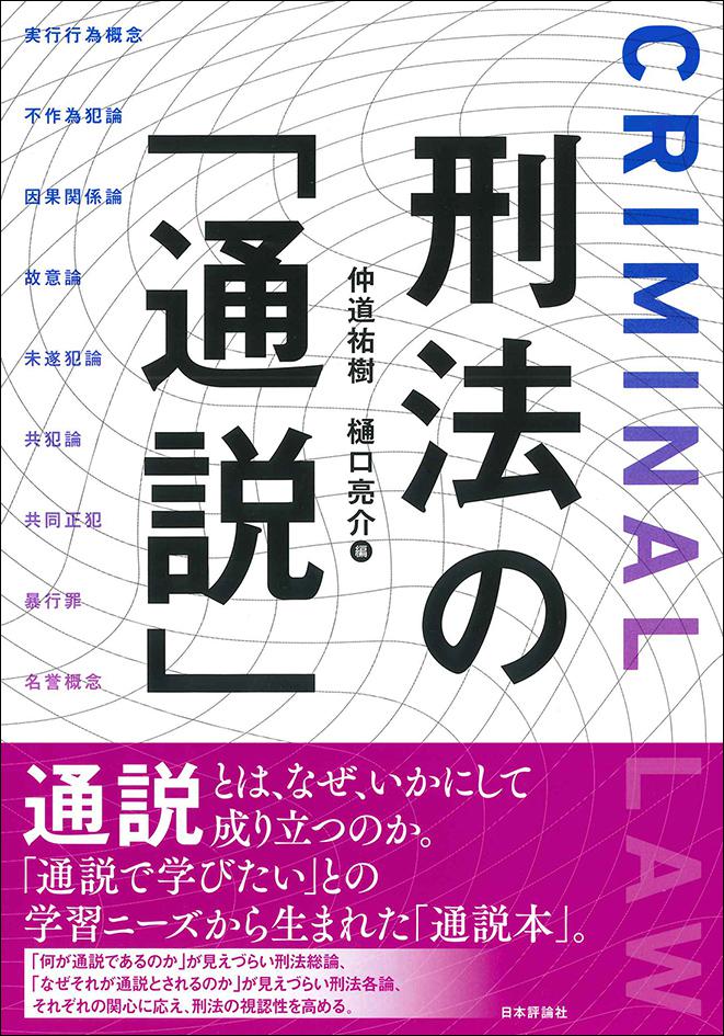 刑法を教えていると、「通説は何ですか」と質問されたり「通説を教えてください」と要望されたりして困惑することがある。困惑の理由が、通説を教えられた学生がそれを丸暗記して満足し、考えようとしなくなるのではないかという懸念であるときは、まだよい。回答を工夫すれば済むからである。本当に困るのは、通説がわからないときである。「わからない」と答えるのが適切な場面もあるが、それでは許されない場面があるのも確かである。学生が許してくれないからではない。法律学も学問であり、学問とは、通説に対する懐疑から出発してこれを突き詰め、新しい何かを付け加えることにより、通説を乗り越えて発展するものである。また、法律学の通説は、学問の世界にとどまらず、判例の形成過程や立法の過程において重要な情報として参照されることがある。このような学問的、実践的な意義からしても、何が通説か、そもそも通説とは何かという問いに向き合うことは不可欠である。本書は、刑法学界をリードする中堅、若手の研究者12名がこの問いに真剣に向き合い、文献調査の方法により、刑法の通説の同定、その問題点の解明、あるべき方向性の提示を試みるとともに、元裁判官2名が刑法の通説と判例を分析する異色の学術書である。¶001